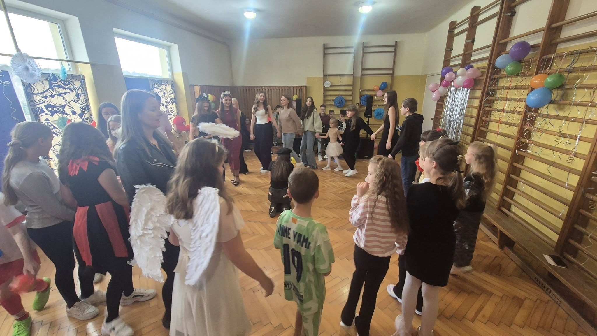 W tym roku szkolnym organizacją wydarzenia zajęła się klasa 4 wraz z wychowawczynią, panią Moniką, oraz niezawodnymi rodzicami, którzy z ogromnym zaangażowaniem włączyli się w przygotowania. Dzięki uczniom klasy 4 i klas starszych sala zamieniła się w kolorowe, pełne blasku miejsce, w którym panowała prawdziwie magiczna atmosfera.