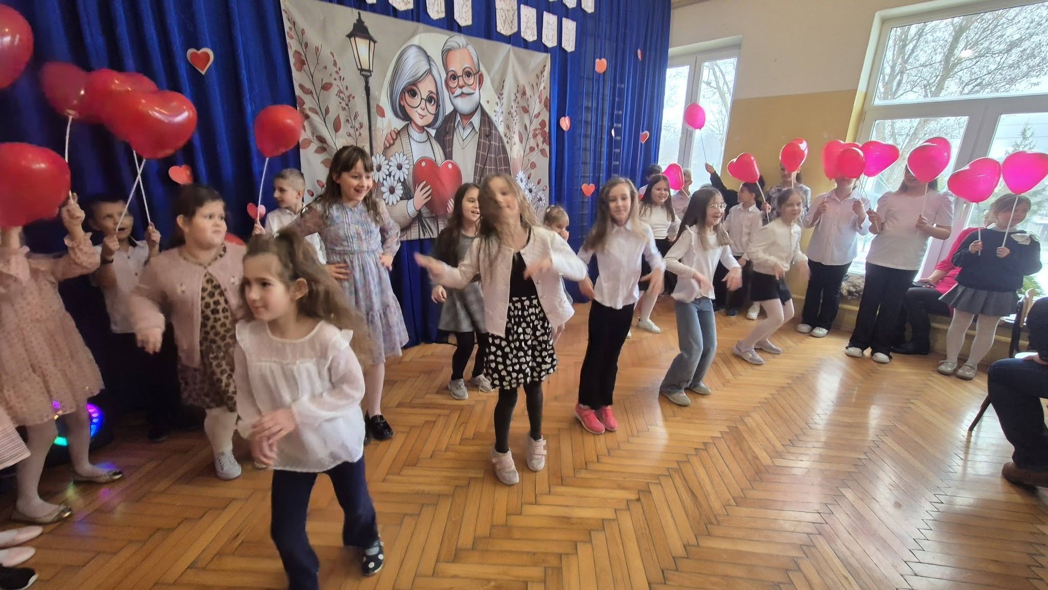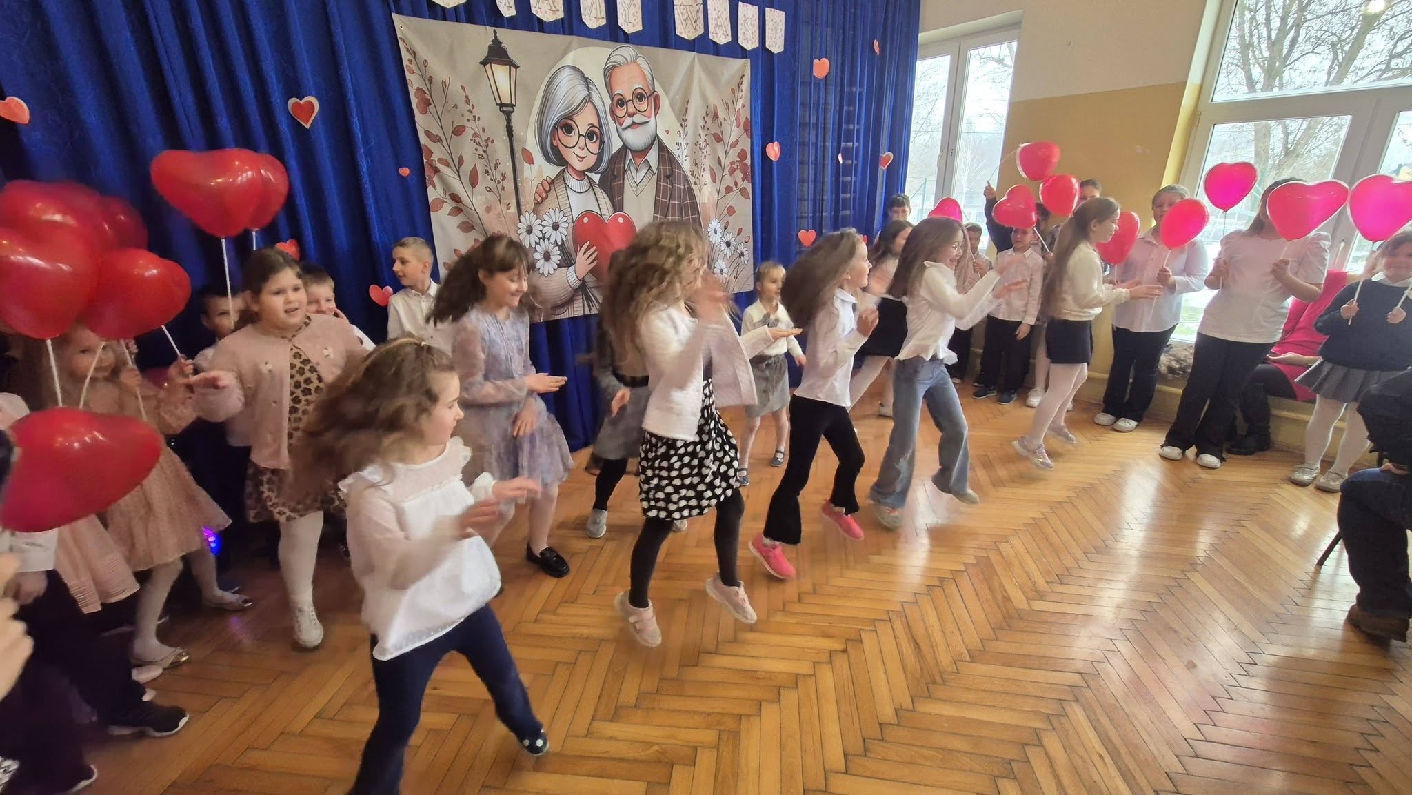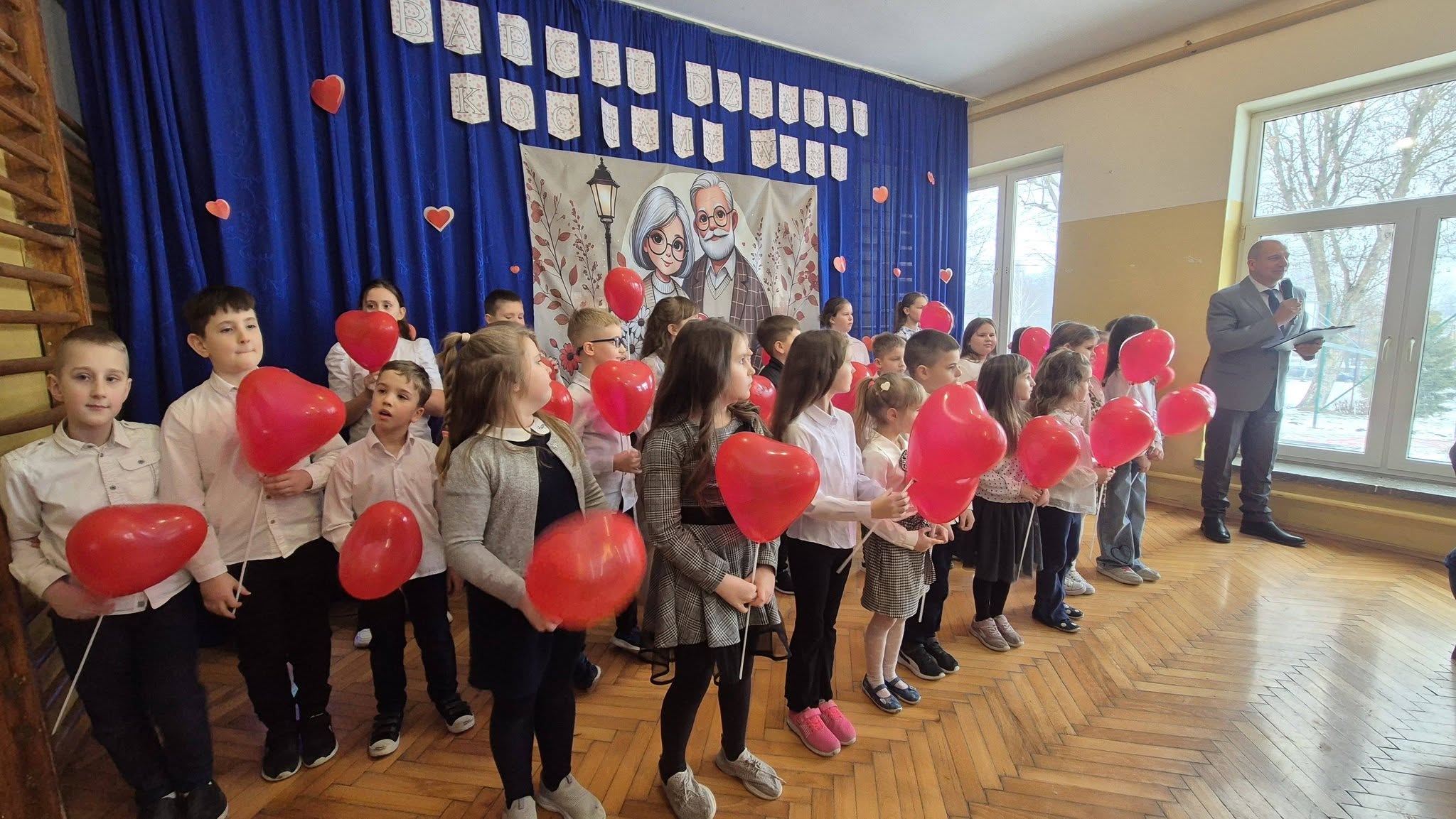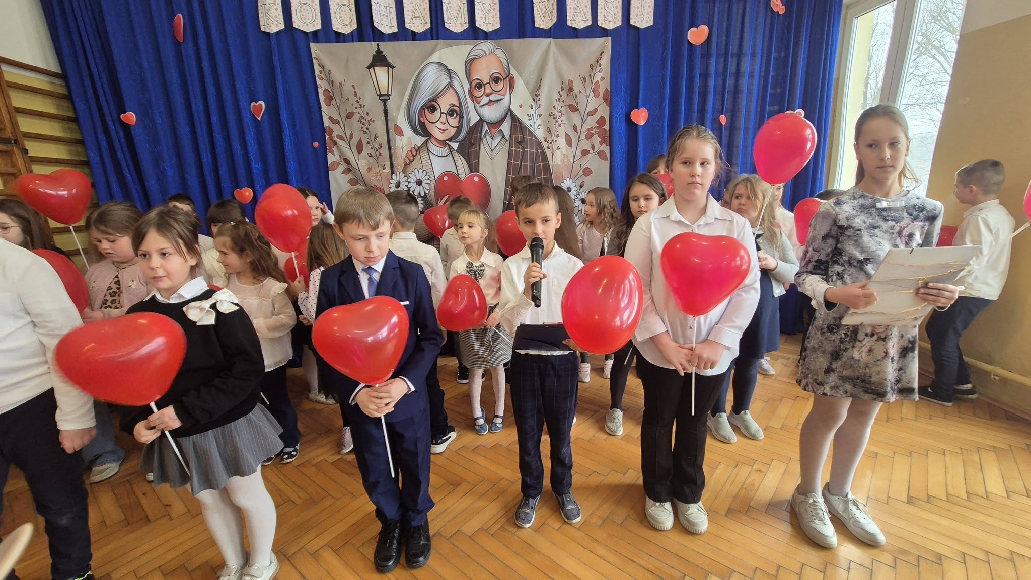 Dzisiaj w naszej szkole odbyła się wyjątkowa uroczystość z okazji Dnia Babci i Dziadka. Uczniowie klas 1–3 przygotowali dla swoich ukochanych dziadków wspaniałe przedstawienie, pełne radości, wzruszeń i uśmiechów. Na scenie nie zabrakło pięknych wierszy, radosnych piosenek oraz kolorowych tańców, które zostały nagrodzone gromkimi brawami.