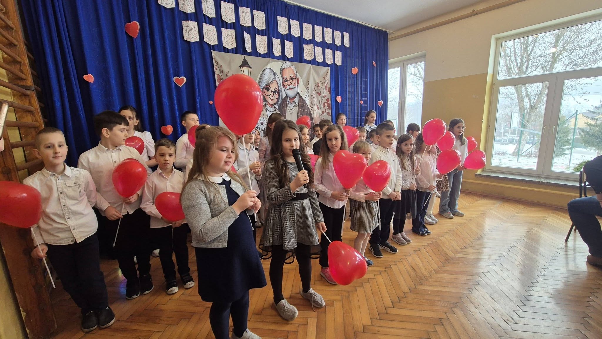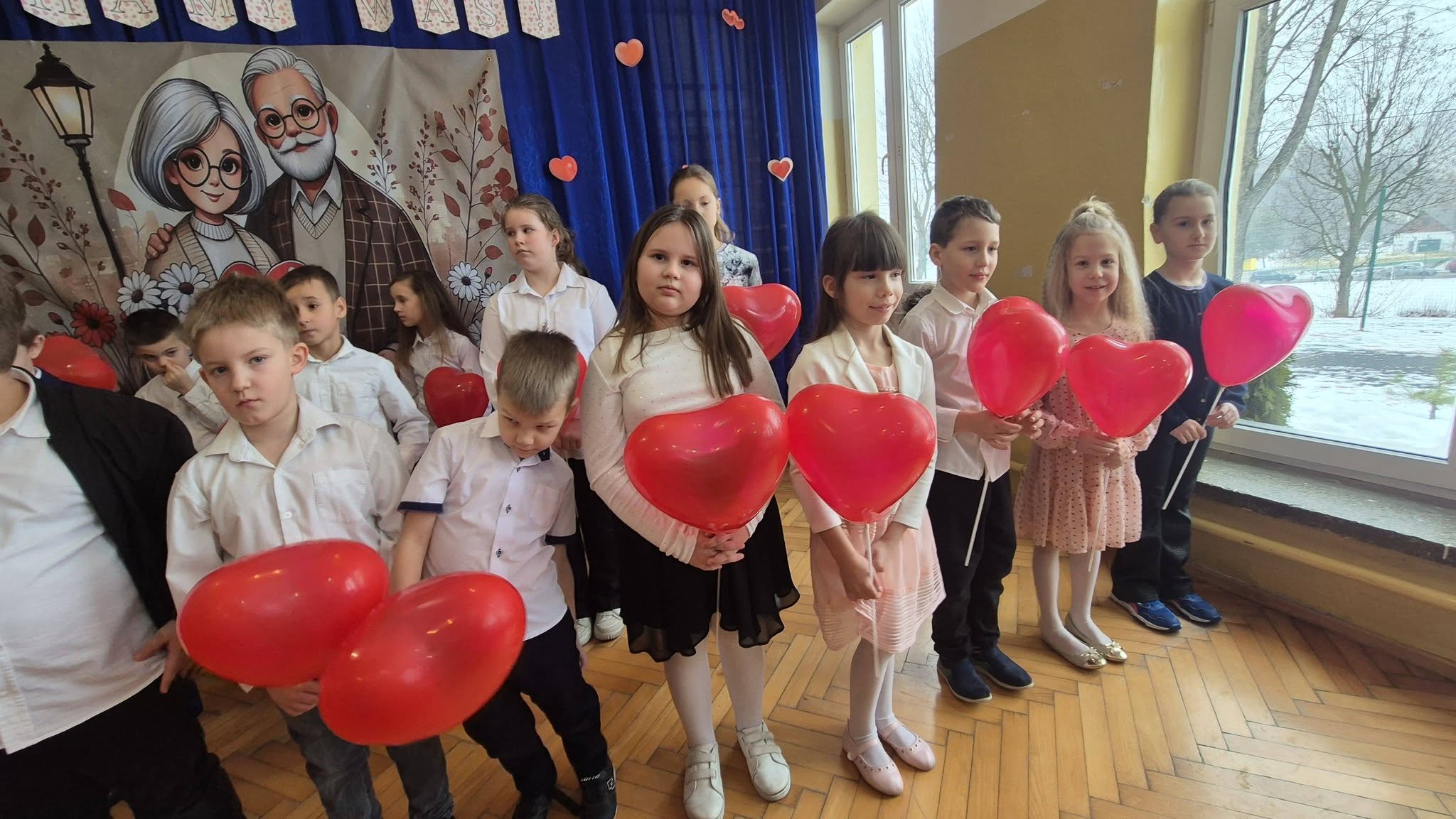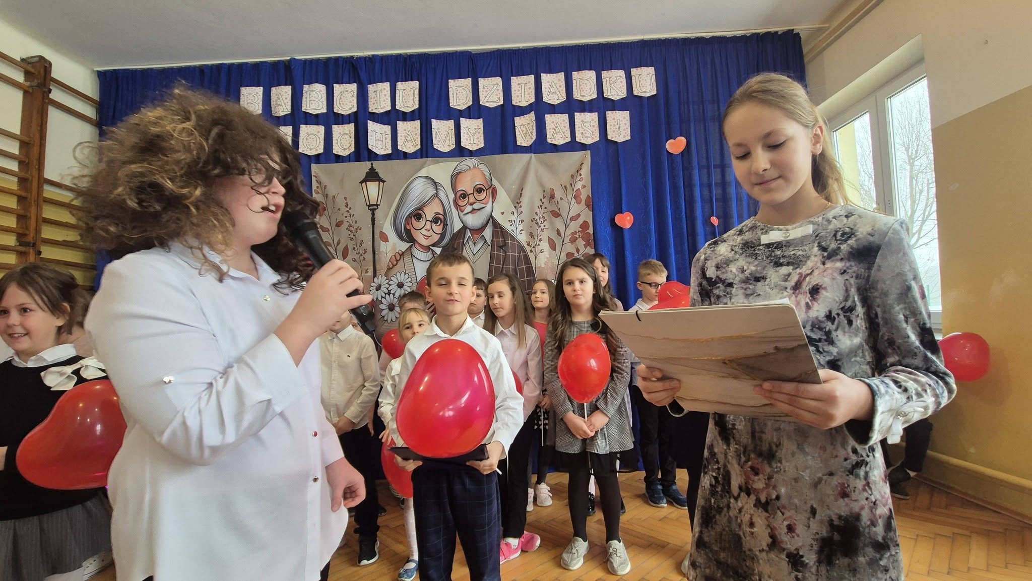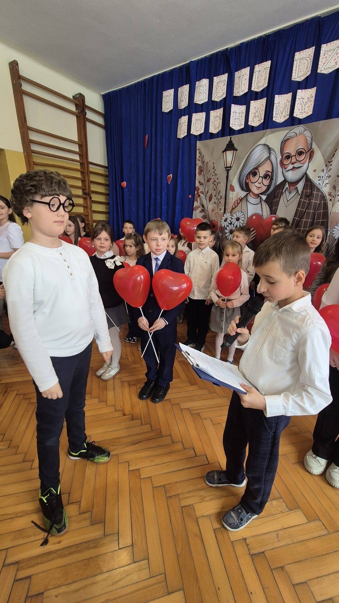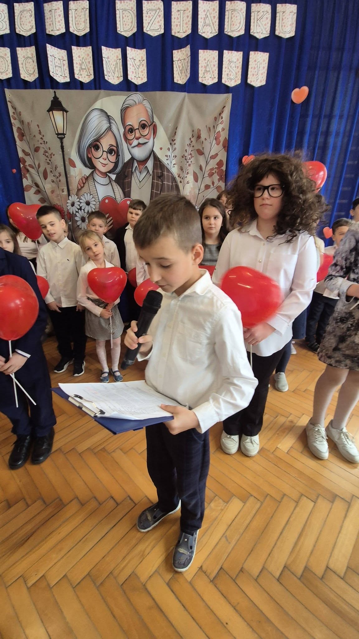 Dzisiaj w naszej szkole odbyła się wyjątkowa uroczystość z okazji Dnia Babci i Dziadka. Uczniowie klas 1–3 przygotowali dla swoich ukochanych dziadków wspaniałe przedstawienie, pełne radości, wzruszeń i uśmiechów. Na scenie nie zabrakło pięknych wierszy, radosnych piosenek oraz kolorowych tańców, które zostały nagrodzone gromkimi brawami.
