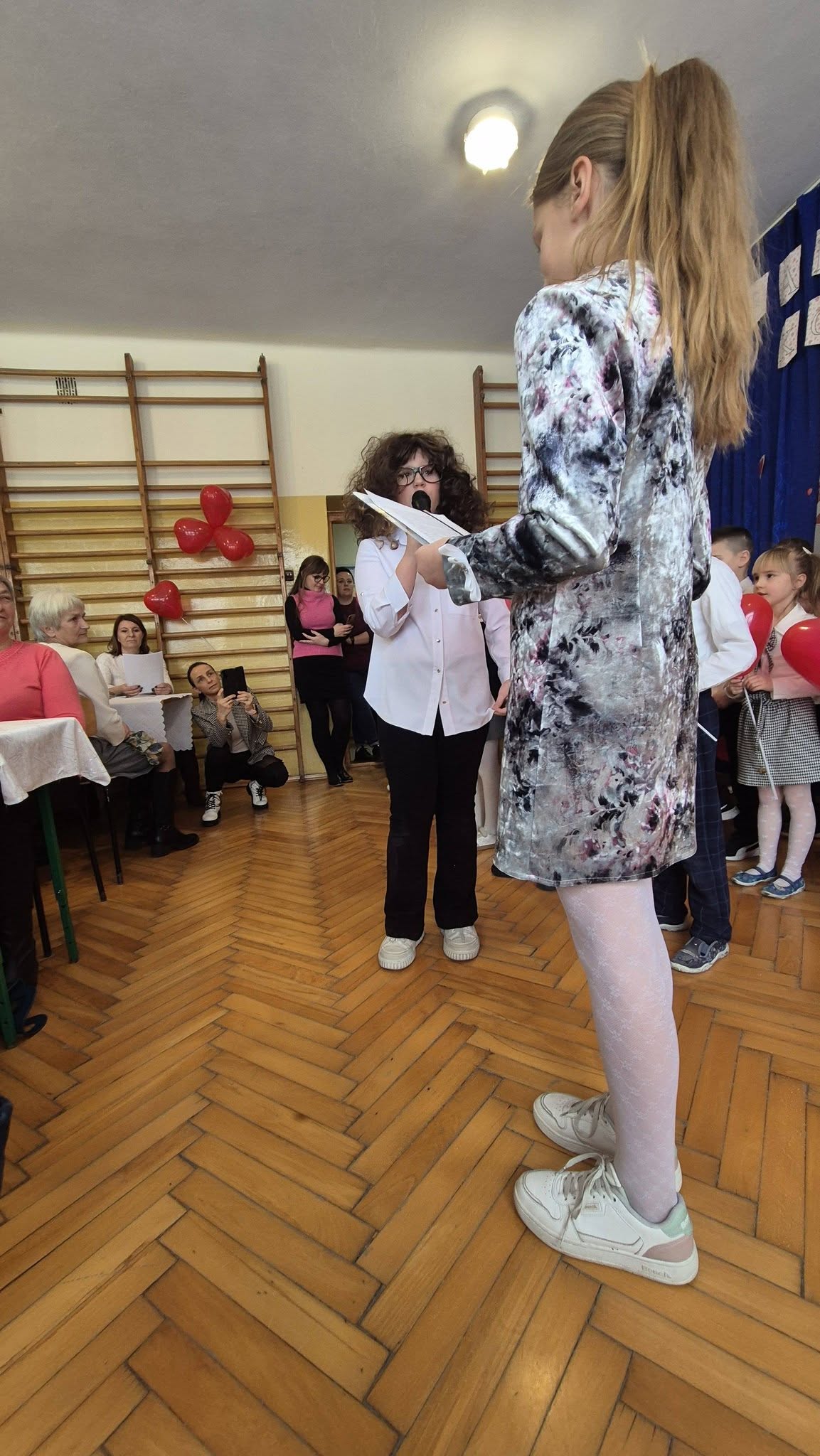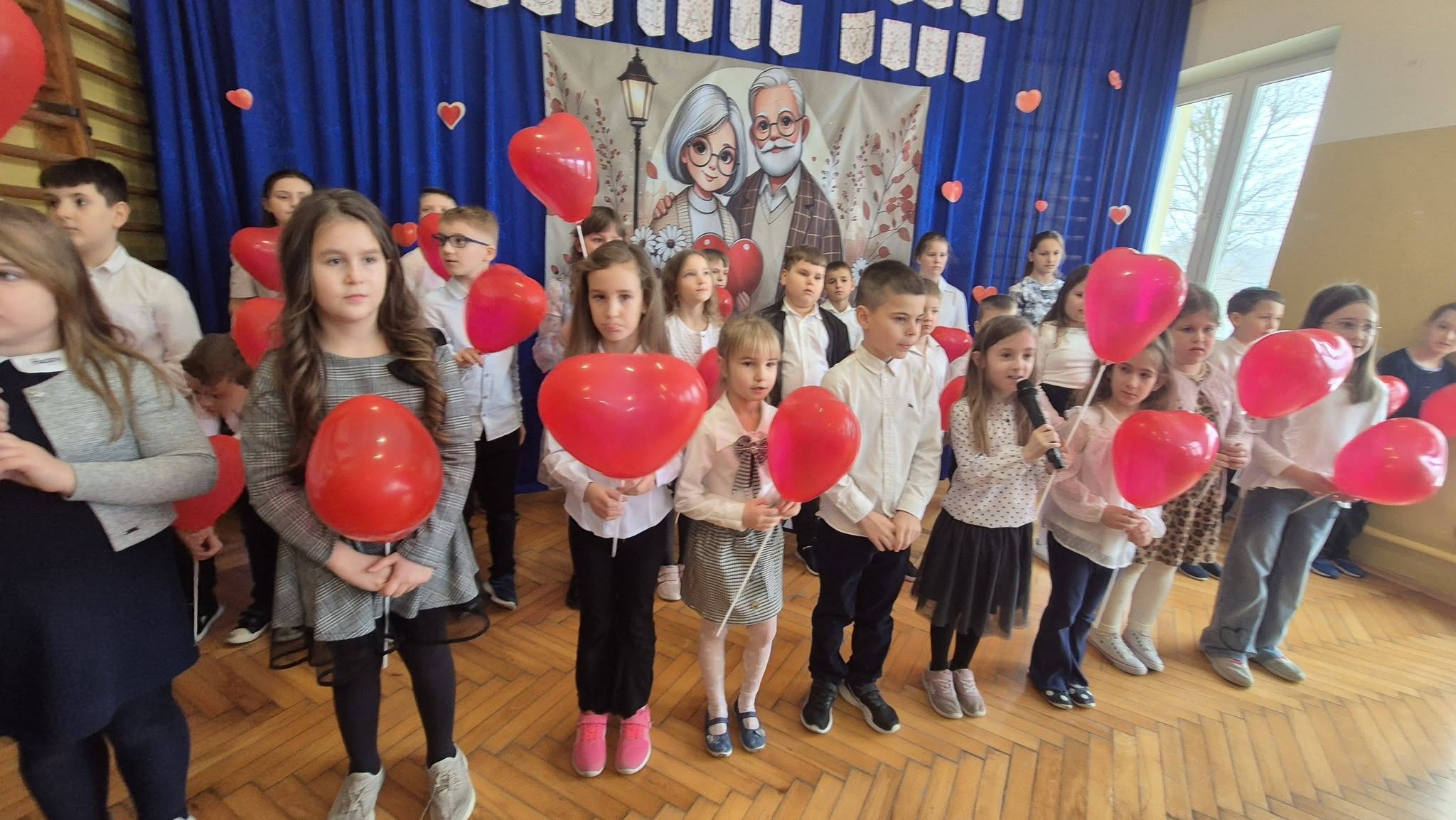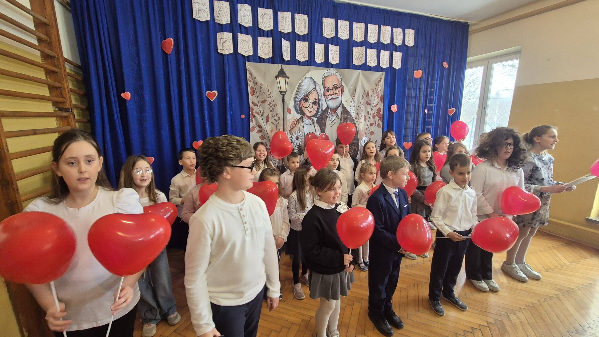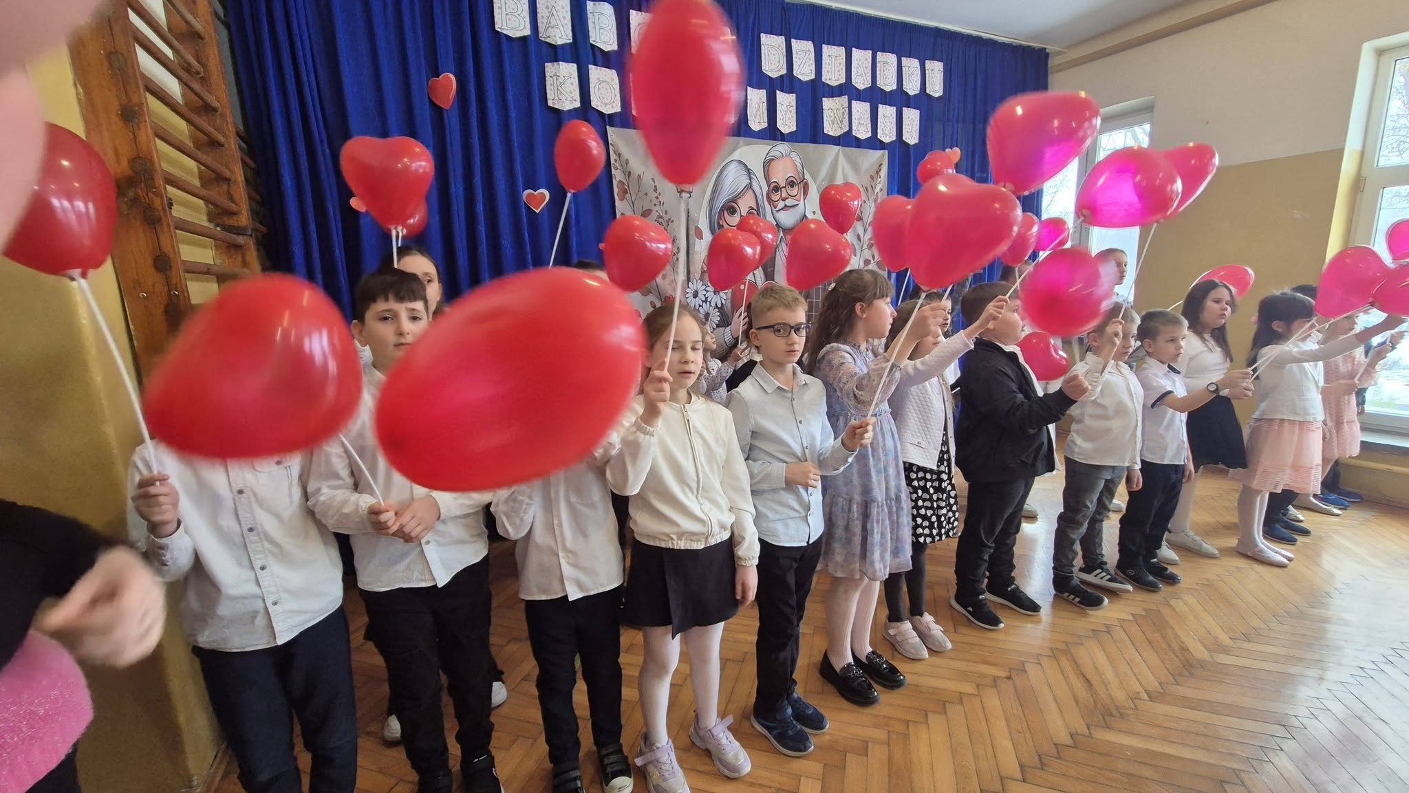 Dzisiaj w naszej szkole odbyła się wyjątkowa uroczystość z okazji Dnia Babci i Dziadka. Uczniowie klas 1–3 przygotowali dla swoich ukochanych dziadków wspaniałe przedstawienie, pełne radości, wzruszeń i uśmiechów. Na scenie nie zabrakło pięknych wierszy, radosnych piosenek oraz kolorowych tańców, które zostały nagrodzone gromkimi brawami.