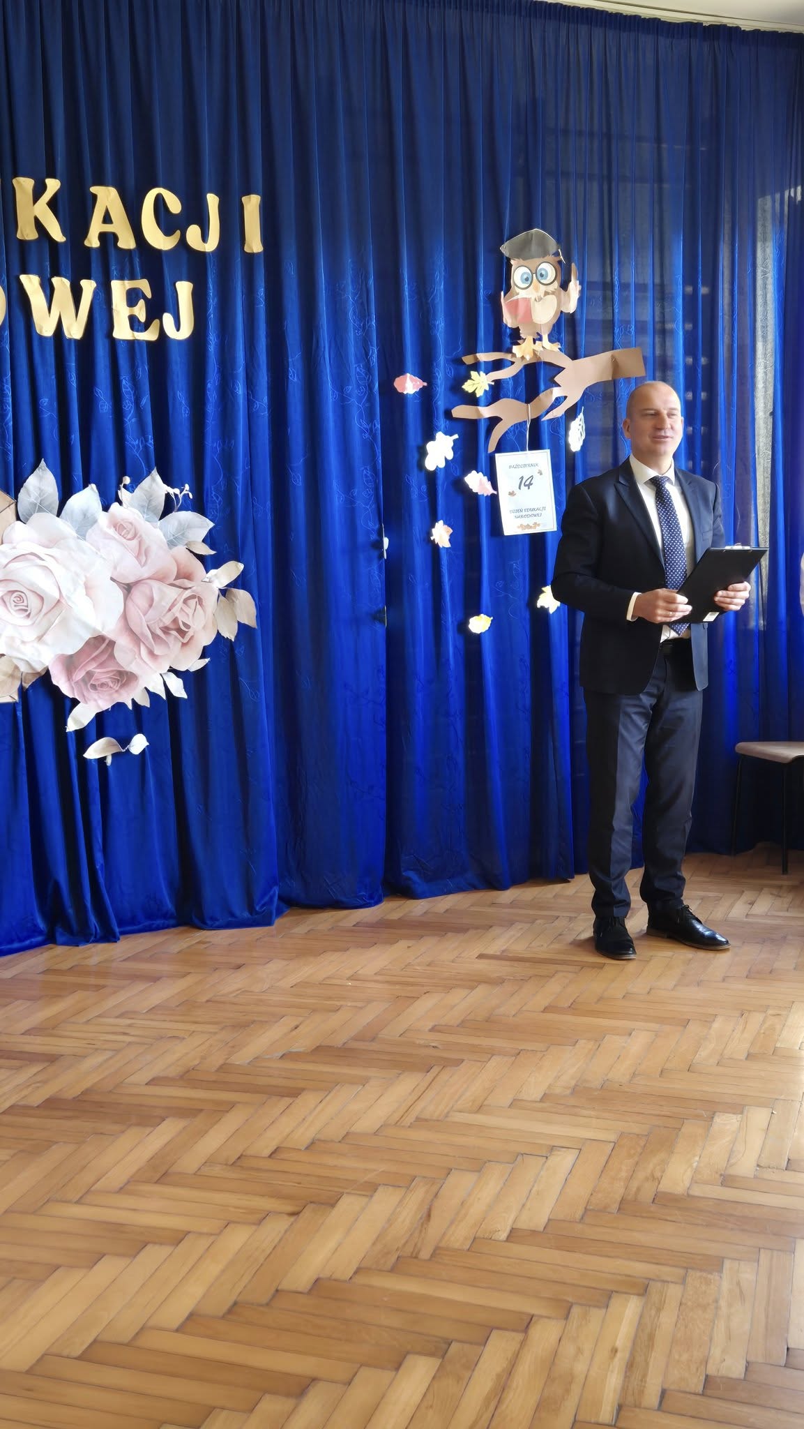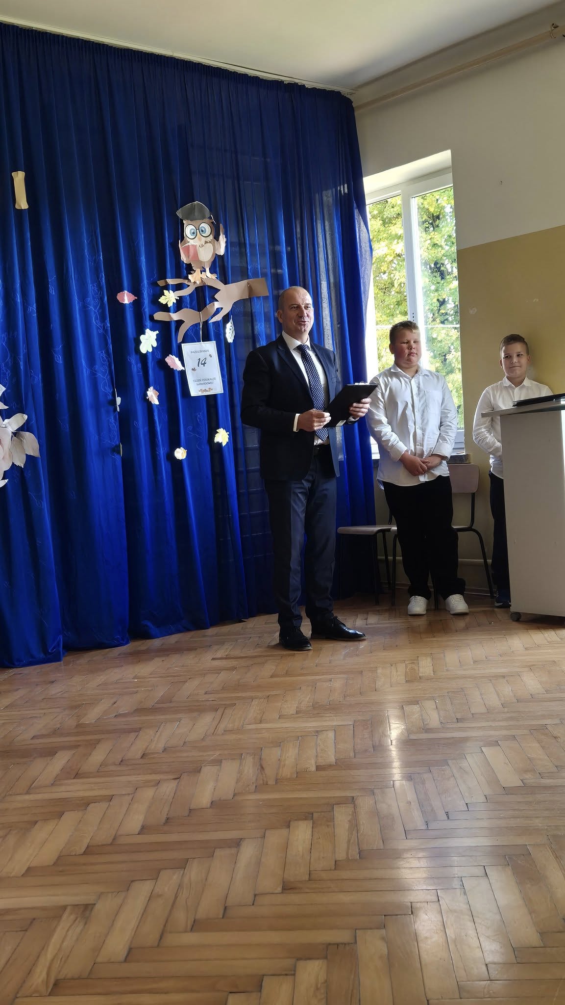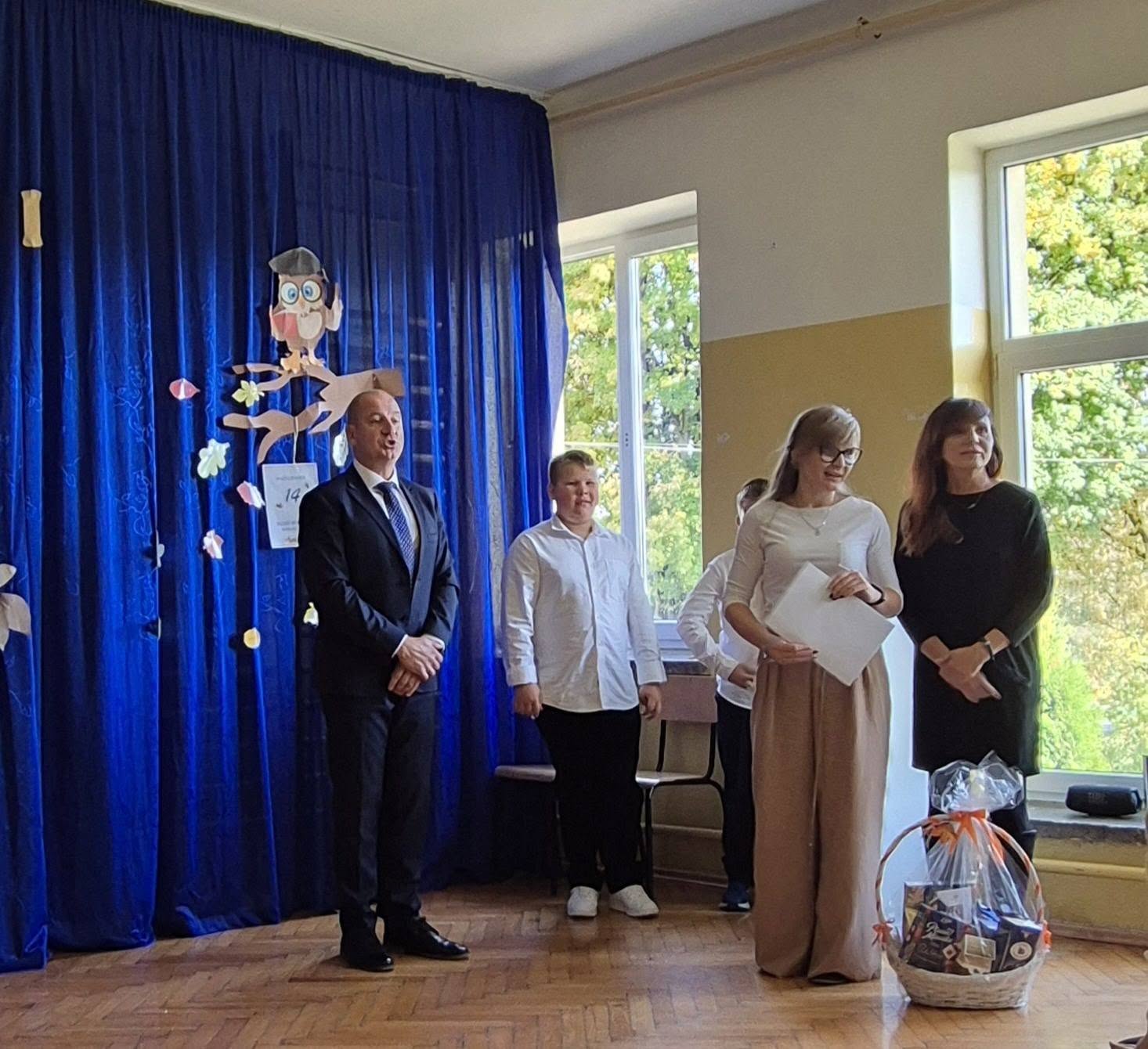 Uroczystość zakończyła się od przemówienia pana dyrektora- Marka Machnika, który złożył serdeczne życzenia wszystkim nauczycielom i pracownikom szkoły. Na zakończenie uroczystości wręczono nagrody dyrektora: Pani Marcie Glanowskiej i Renacie Maroszek oraz jubileuszowe wyróżnienia dla nauczycieli: Pani Marzannie Galon, Małgorzacie Madej i Anecie Hałas.