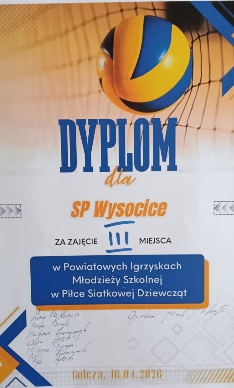 III miejsce dziewcząt w Powiatowych Igrzyskach Młodzieży Szkolnej w Piłce Siatkowej Dziewcząt - Publiczna Szkoła Podstawowa w WysocicachPrzejdz do menu głównegoPrzejdz do treści