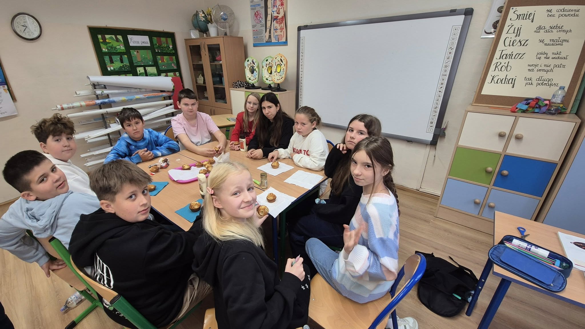 ZajÄ™cia byÅ‚y doskonałą okazjÄ… do nauki wspóÅ‚pracy, rozwijania kreatywnoÅ›ci oraz budowania wiÄ™zi w zespole klasowym. Na zakoÅ„czenie wszyscy z dumÄ… degustowali wÅ‚asnorÄ™cznie przygotowane babeczki, dzielÄ…c siÄ™ wrażeniami i przepisami.