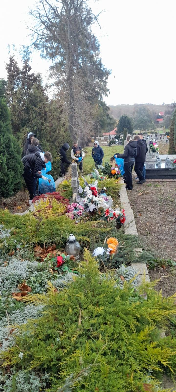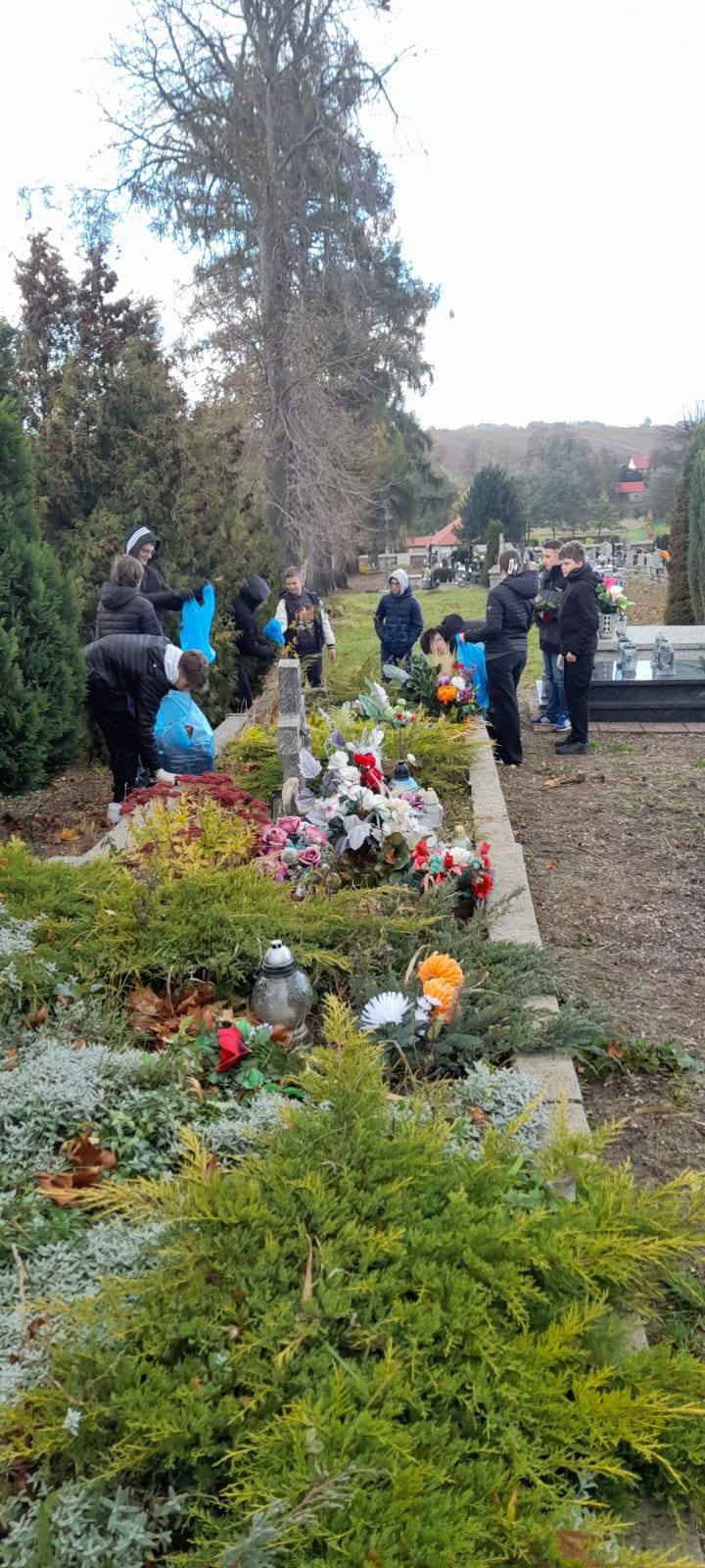 Uczniowie klasy VIII wraz z nauczycielkÄ… p. DorotkÄ… wybrali siÄ™ na cmentarz, aby posprzÄ…tać groby żoÅ‚nierzy. ZanieÅ›li piÄ™kne wiÄ…zanki wykonane wÅ‚asnorÄ™cznie przez uczniów oraz zapalili znicze, oddajÄ…c w ten sposób hoÅ‚d polegÅ‚ym za ojczyznÄ™.