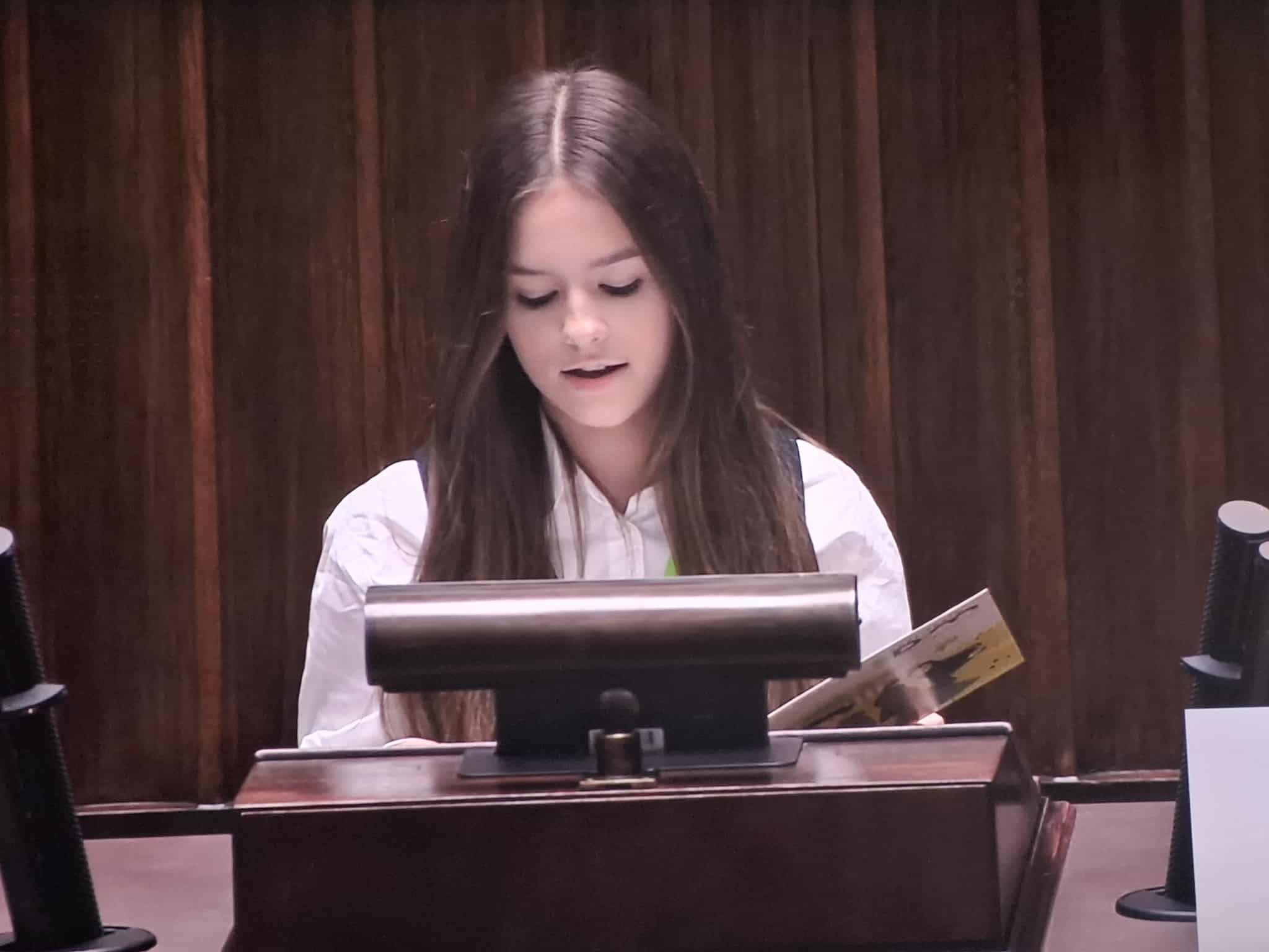 Podczas posiedzenia głos zabrała nasza uczennica Liwia Wojtkiewicz, która poruszyła niezwykle ważny temat braku psychologa w szkołach i potrzeby wsparcia psychologicznego dla uczniów.