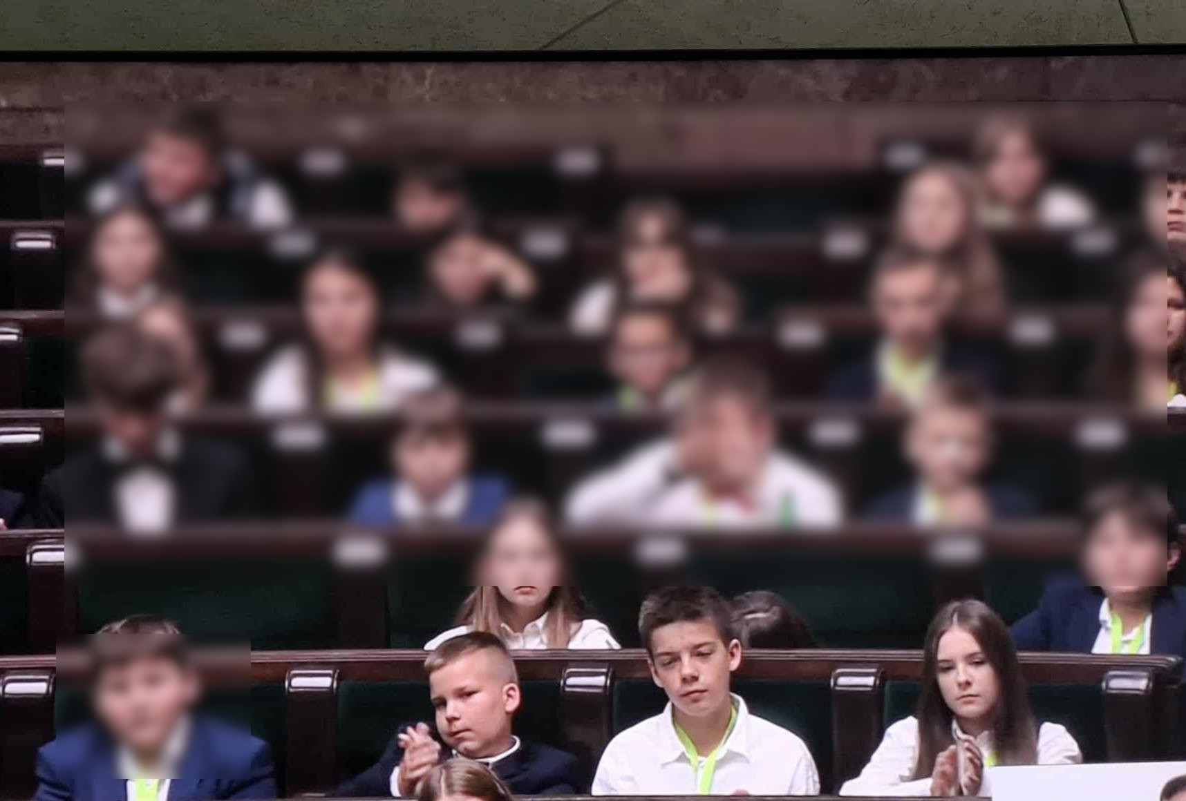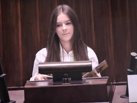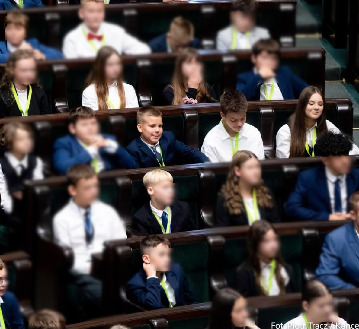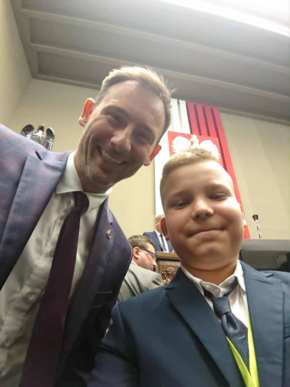 28.09.2025r. nasi uczniowie – Liwia Wojtkiewicz, Kacper Majchrowski i Ksawery Machnik – wraz z panią Renatą Maroszek, nauczycielem historii, wzięli udział w obradach Sejmu Dzieci i Młodzieży w Warszawie.
