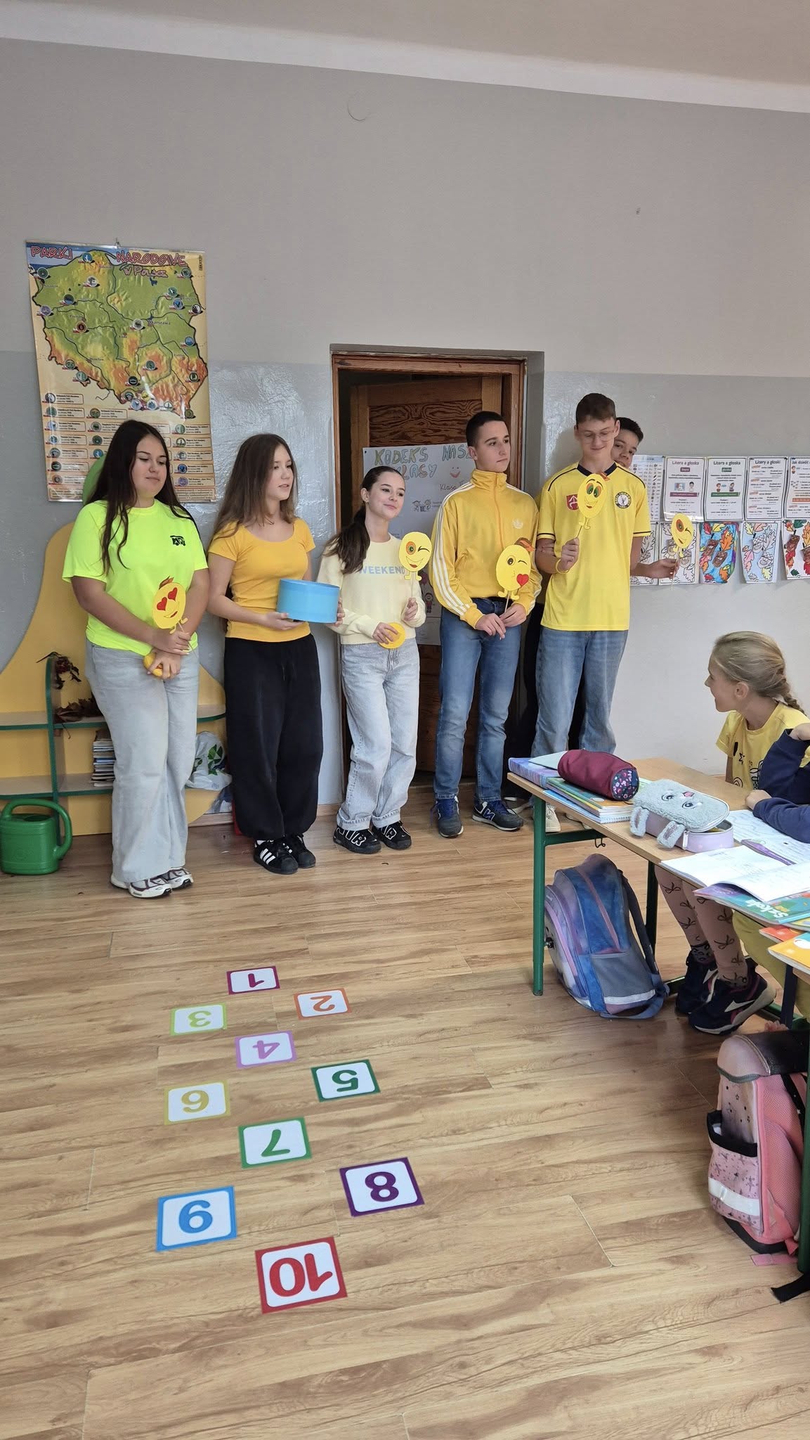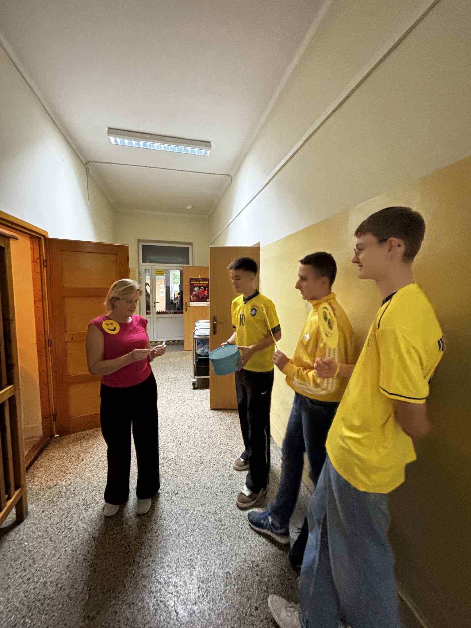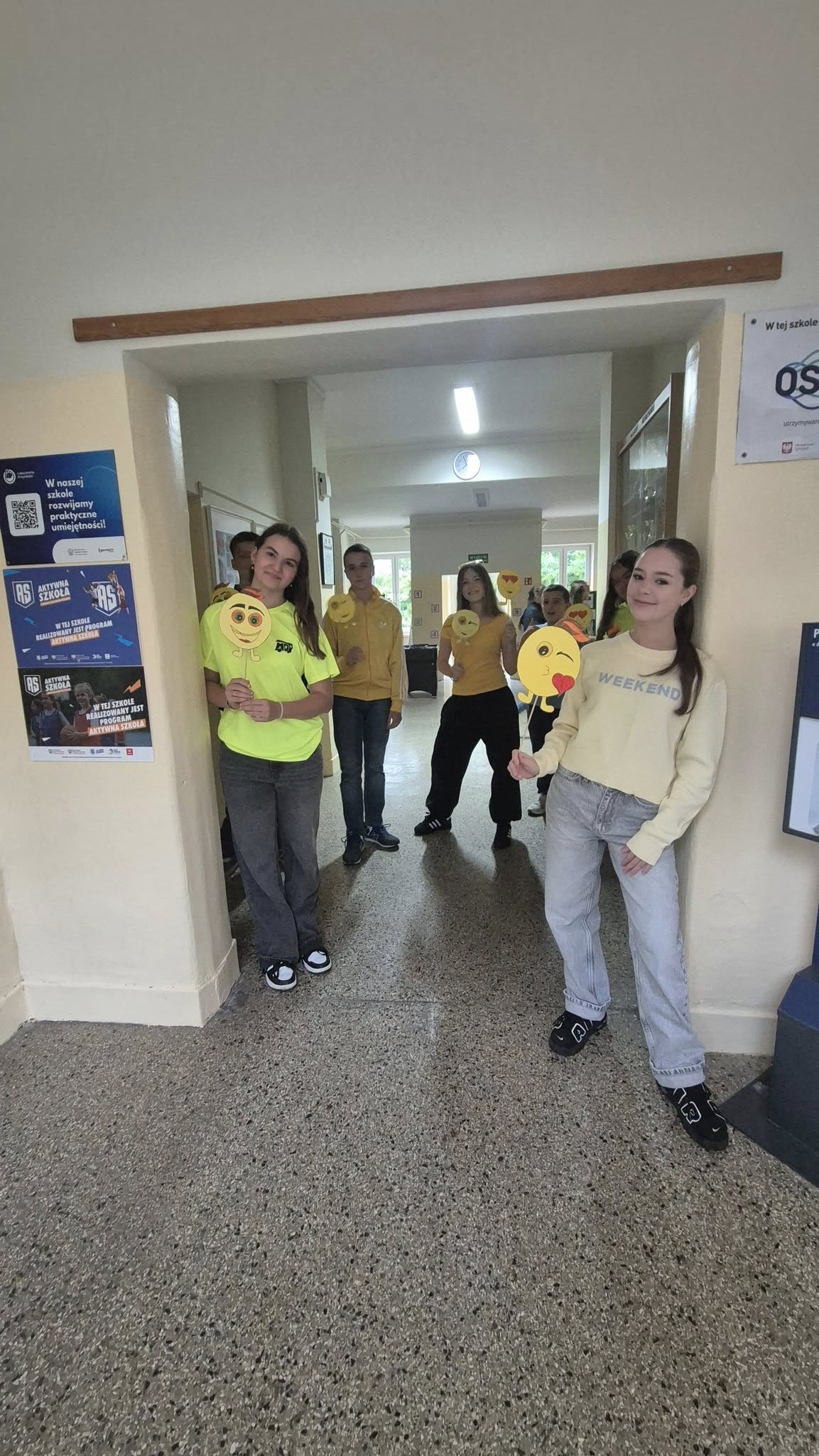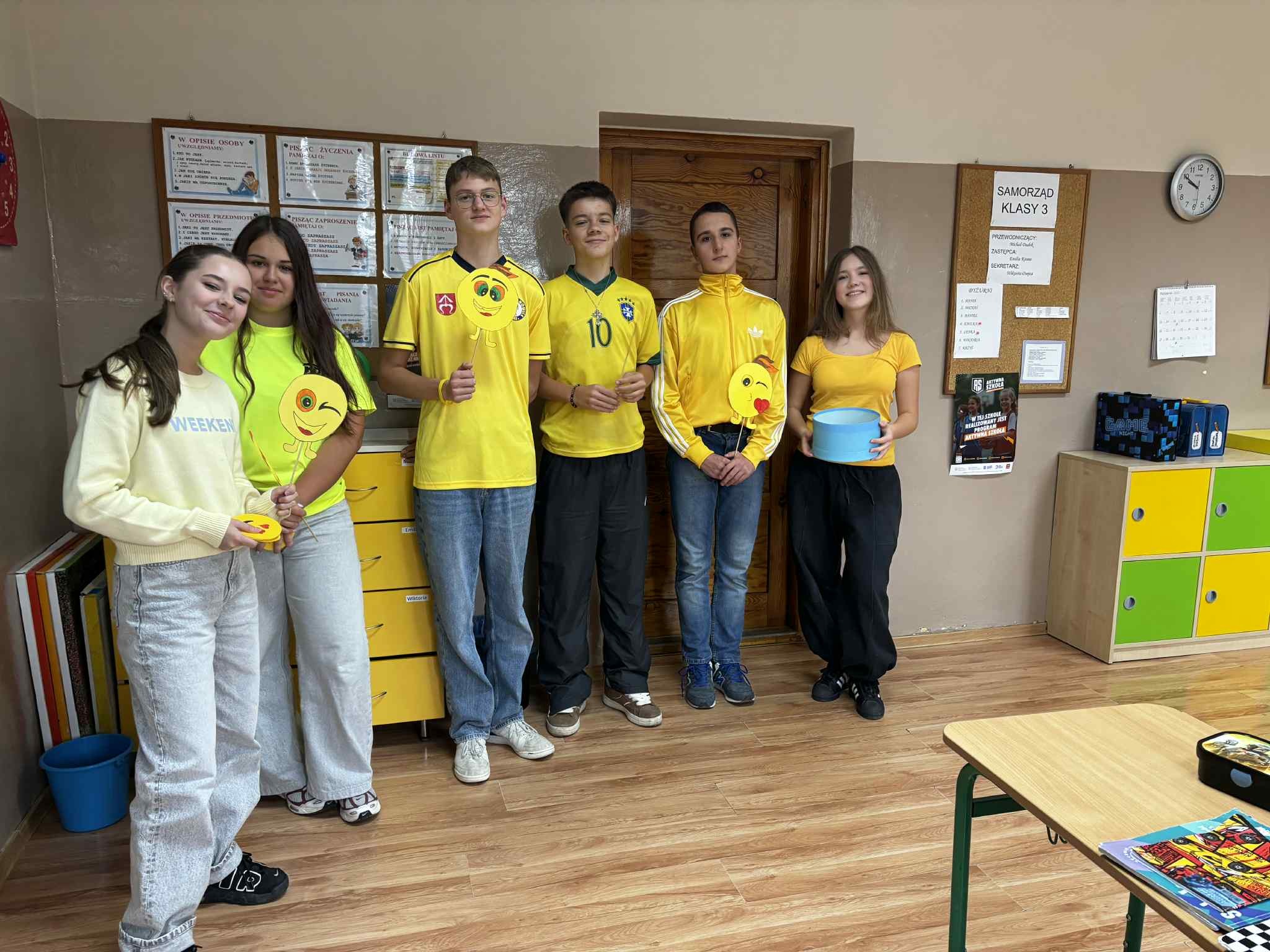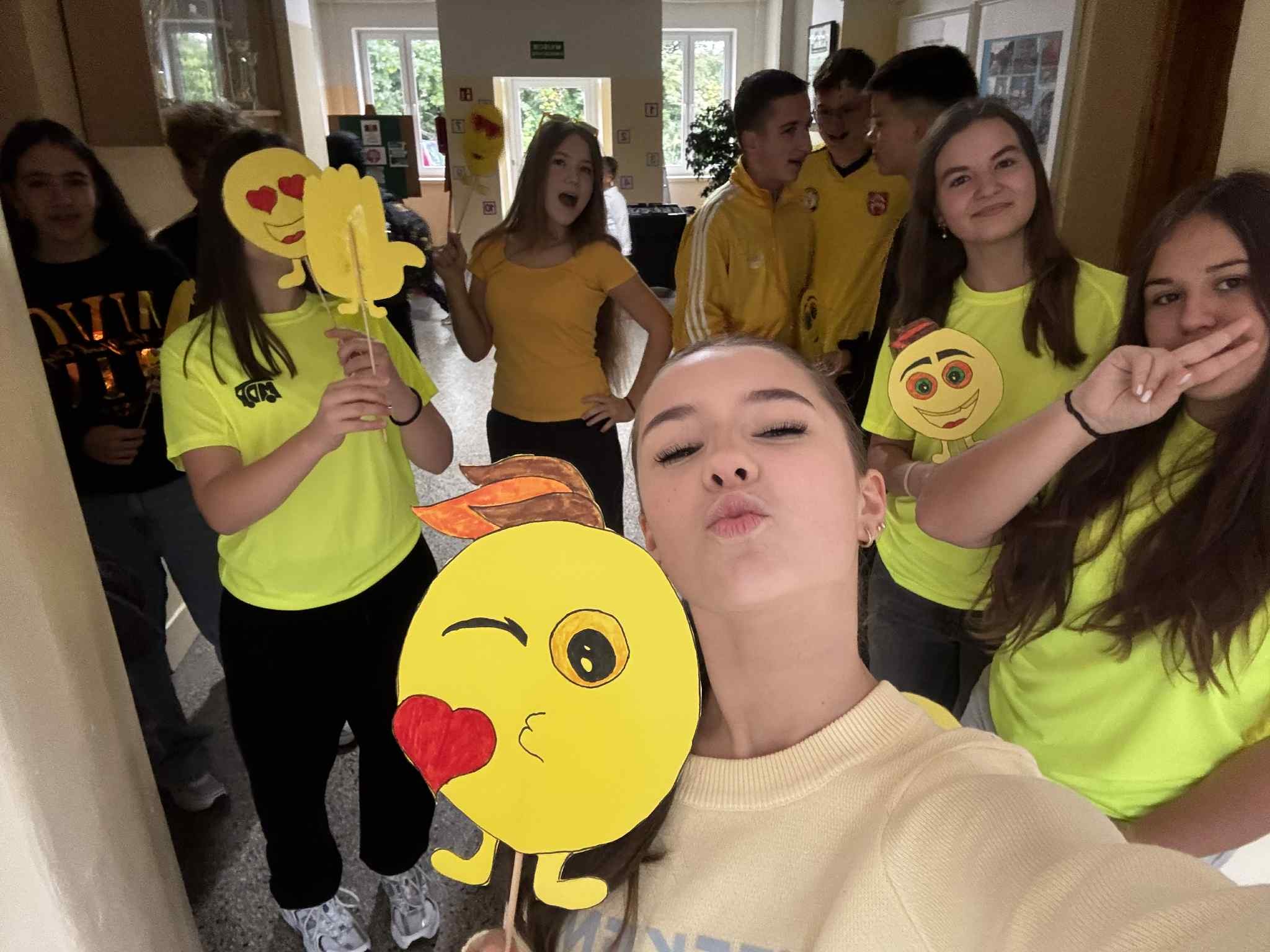 Nasza szkoła obchodzila ten wyjatkowy dzień. Dlatego w naszej szkole panowała wyjątkowa, pogodna atmosfera. Uczniowie przyszli ubrani na żółto, symbolizując radość i optymizm. Starsi uczniowie z klasy VIII witali młodszych kolegów w drzwiach szkoły z szerokimi uśmiechami, emotkami i pozytywną energią. Uczennica klasy 8- Julia przygotowała również niespodzianki w postaci emotek z uśmiechem, które wręczali wszystkim uczniom.