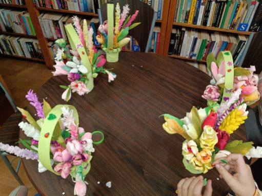 Dzisiaj Gminna Biblioteka Publiczna im. ks. dra Jana Piekoszewskiego w Gołczy w filii w Wysocicach zorganizowała warsztaty dla klasy 1, ktore przebiegły w miłej i twórczej atmosferze. Uczniowie wysłuchali wiersza Jana Brzechwy „Wiosenne porządki”, który stał się wprowadzeniem do rozmowy o wiośnie.