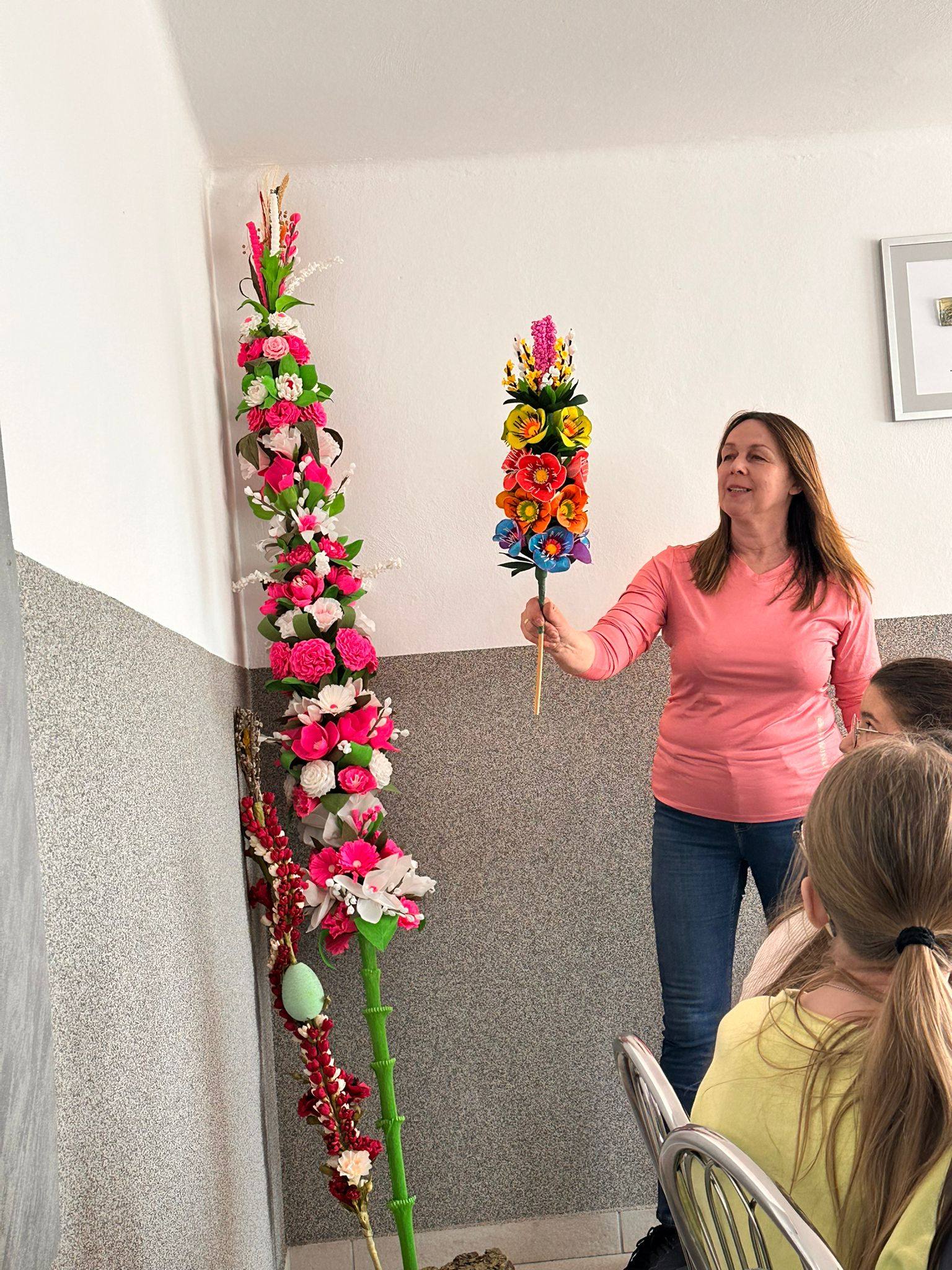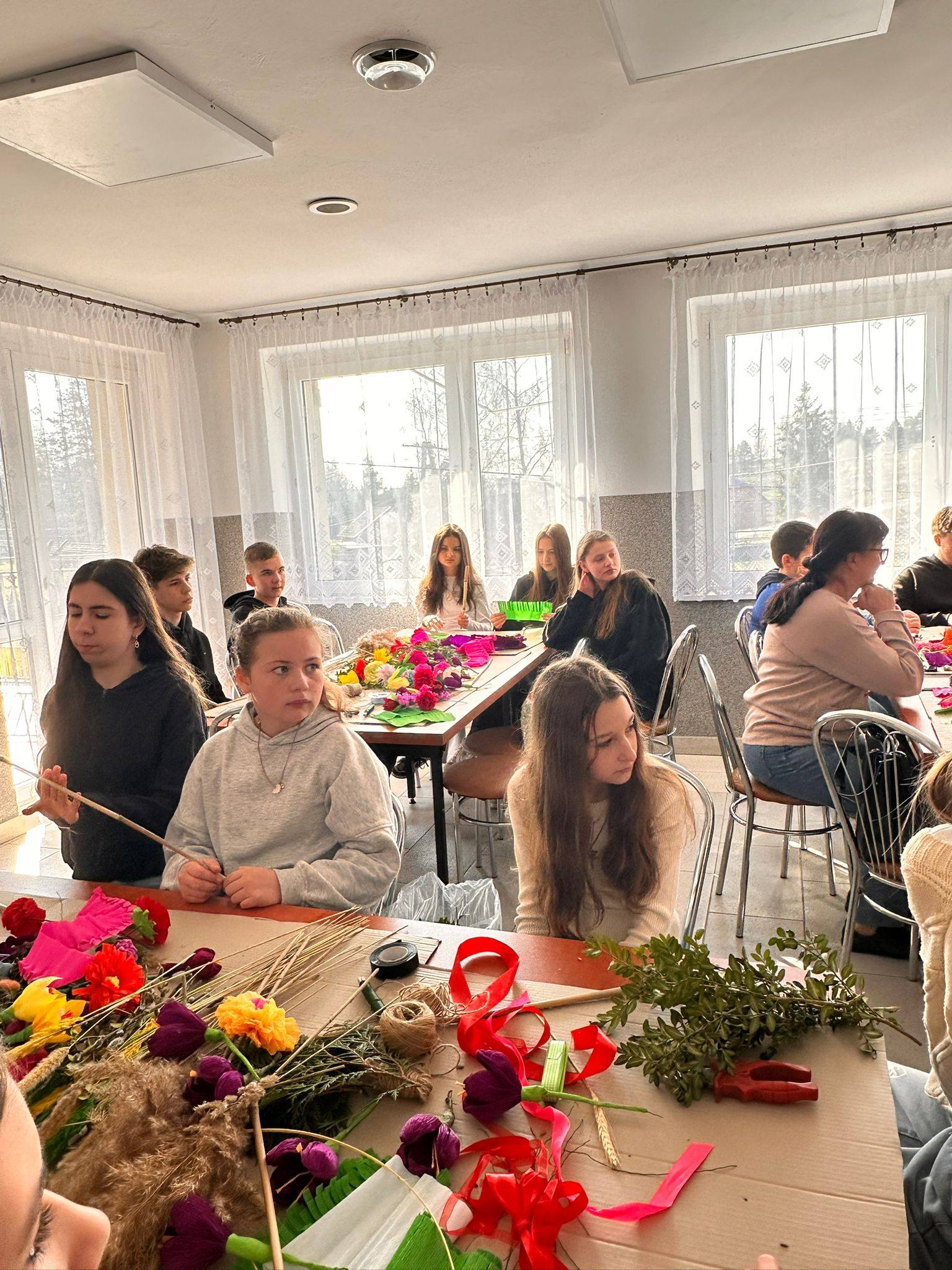 Podczas warsztatów uczniowie mieli okazję dowiedzieć się, jak powstają tradycyjne palmy wielkanocne oraz jakie materiały są do ich wykonania potrzebne. Pod okiem prowadzących samodzielnie tworzyli swoje własne palmy, wykorzystując kolorowe wstążki, kwiaty oraz gałązki. Każda praca była wyjątkowa i odzwierciedlała pomysłowość oraz zaangażowanie uczniów.