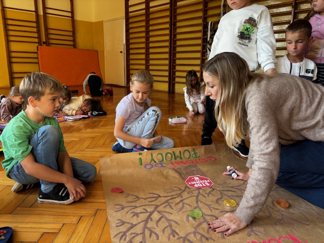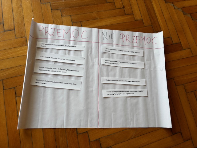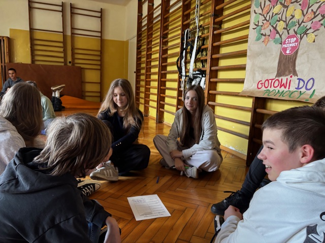 Klasy 1–3 poznały rodzaje przemocy oraz uczyły się jak jej zapobiegać. Klasy 4–6 zastanawiały się, czy każde trudne zdarzenie to przemoc oraz jak reagować w sposób budujący.