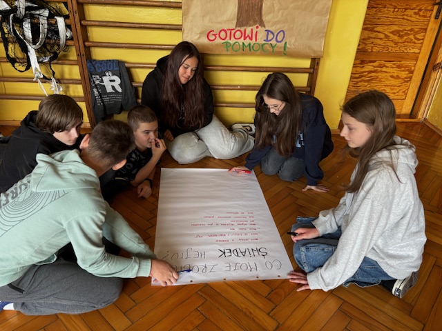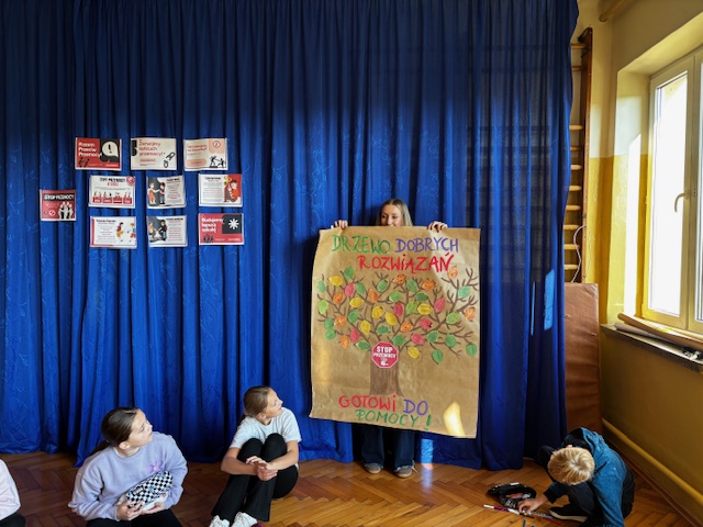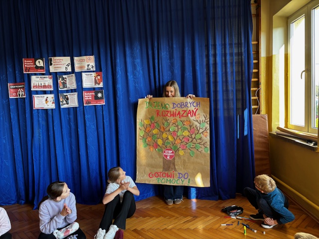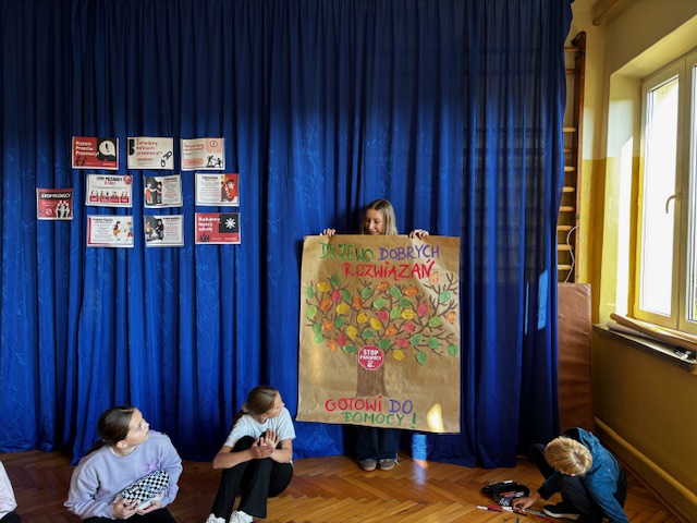Na zakończenie każda grupa przygotowała plakaty, które nie tylko ozdobią szkolne korytarze, ale będą też przypomnieniem, że każdy z nas ma wpływ na tworzenie bezpiecznej i życzliwej szkoły.