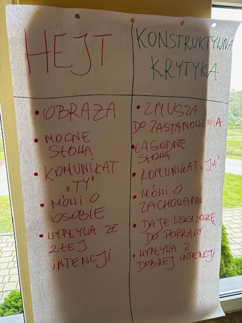 Starsi uczniowie (klasy 7–8) skupili się na zjawisku hejtu, analizując je z różnych perspektyw i ucząc się, jak zastępować go konstruktywną krytyką.