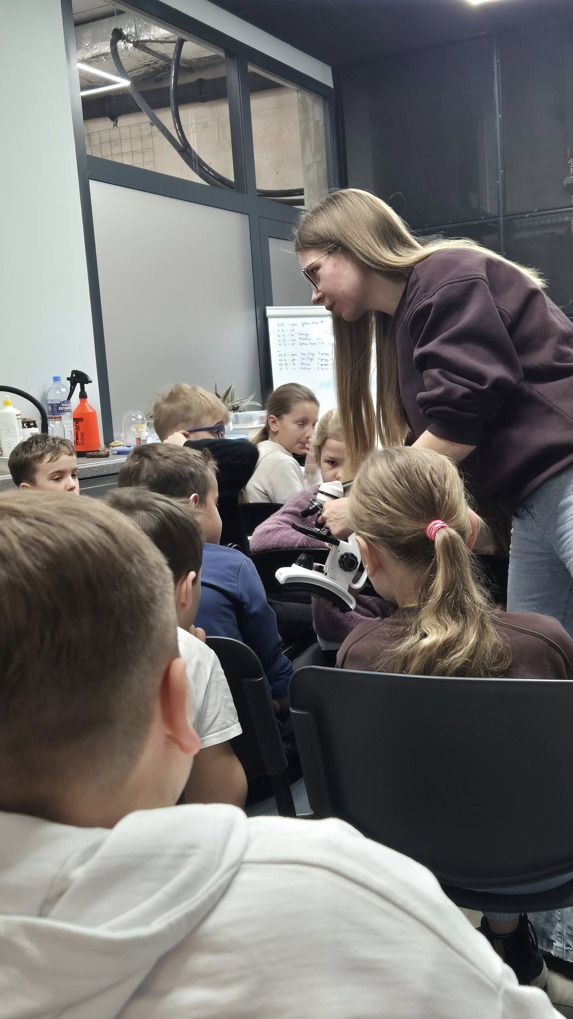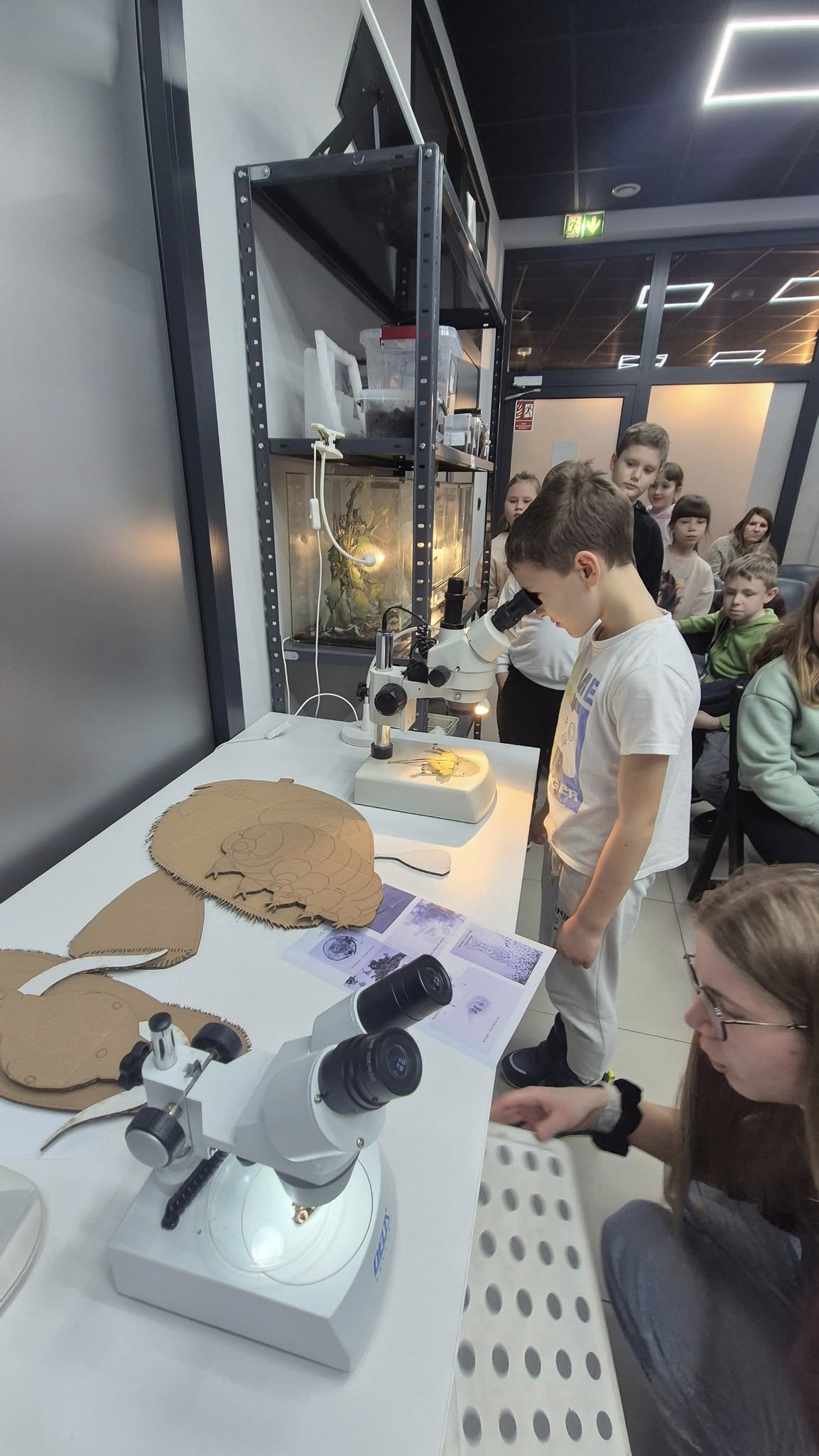 Po emocjonujących przeżyciach przyszedł czas na zajęcia z mikrobiologii, gdzie dowiedzieli się m. in. co to są niesproczaki? Czyli niesamowicie wytrzymałych mikroskopijnych zwierząt, zwanych też "wodnymi niedźwiedziami" (Tardigrada), które potrafią przetrwać w kosmosie, ekstremalnych temperaturach, ogromnym ciśnieniu i promieniowaniu, dzięki zdolności do wchodzenia w stan kryptobiozy, czyli niemal całkowitego odwodnienia. Poznali także budowę pantofelka. To była doskonała lekcja przyrody.